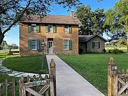 It was built by stonemason Richard Howe (1825-1910). It is a two-story, three-bay, gable roofed limestone building with vernacular style, with elements of Federal and Greek Revival architecture.[2]