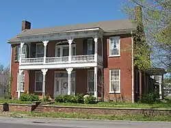 It is a two-story five-bay brick I-house. The house "represents a transitional style, containing both Federal and Greek Revival elements. The Flemish bond brickwork evident on the front facade and the jack arches over the bays express the Federal style, while the front entrances and much of the interior trim reflect the Greek Revival."[2]