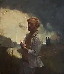 Scott is known for his classically influenced history paintings and narrative portraits.[4] His current body of work explores the historical origins and legacy of systemic and social discrimination as well as gun violence in American Culture.[5] The first major piece in the series "When the Man Comes Around" is in the permanent collection of the Georgia Museum of Art.[6] His largest work to date, "Hearts of Men" was unveiled at Paul Booth Gallery in New York City August 2016. His second major work "New Amsterdam", which traces the legacy of slavery in America from the Dutch settlers to mass incarceration, was unveiled at Spalding Nix Fine Art in Atlanta, GA in February 2018.[7]