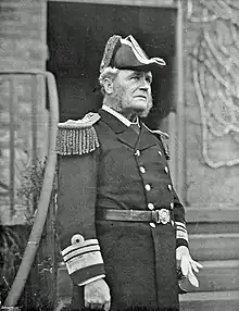 Wells joined the Royal Navy in 1847[1] and served in the Crimean War in 1855.[2] He was on board HMS Bombay when she was accidentally burned in 1864 with the loss of 91 lives off Montevideo.[1] Promoted to captain in 1866, he commanded HMS Revenge, HMS Royal Alfred, HMS Bellerophon and then HMS Agincourt.[1] He became Captain of the training ship HMS Britannia in 1880 before being appointed Commander-in-Chief, Cape of Good Hope and West Coast of Africa Station in 1888 and Commander-in-Chief, The Nore in 1894.[1]