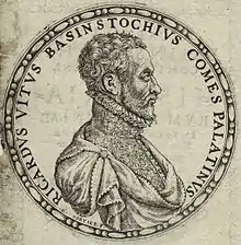 - Ælia Lælia Crispis. Epitaphium antiquum quod in agro Bononiensi adhuc uidetur; a diuersis hactenus interpretatum uarie: nouissime autem a Ricardo Vito Basinstochio, amicorum precibus explicatum, Padua, 1568. Dedicated to Christopher Johnson, chief master of Winchester school; reprinted, Dort, 1618. Its subject is the enigmatic inscription, then recent, dedicated to "Ælia Lælia Crispis".[3]