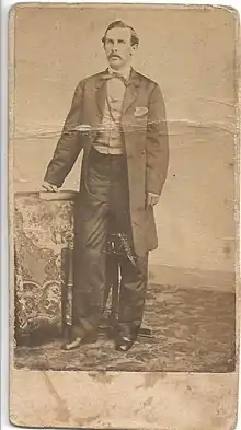 Gassaway Watkins, born in 1752, was admitted as an original member of The Society of the Cincinnati in the state of Maryland when it was established in 1783.[5] He later served as vice president (1831-1839) and president of the Maryland Society (1839-1840), serving in the latter capacity until his death.[6] When he died in 1840, he was the last surviving original member of the Maryland Society, and reportedly of the Old Line. General George Washington reportedly referred to the Maryland Line as the "Old Line" due to the quality and length of their service during the Battle of Long Island.[7] He was also one of the Maryland 400. Colonel Watkins served under General William Smallwood at Long Island and at the Battle of Cowpens, among other engagements. Colonel Watkins was married three times: first to Sarah Jones, who died within a year without issue from the marriage; then, to Ruth Dorsey, with whom he had Gassaway, Bonaparte, Thomas, Turenne, Charlotte and Ann Watkins; and, following Ruth's death, he married Elenora Bowie Clagett on April 26, 1803, with whom he had Caroline Lyles Watkins (1804-1896), Camsadel Bowie Watkins (1805-1842), Eleanor Clagett Watkins (1807-1868), Amanda Watkins (1809 - ), Elizabeth Louise Watkins (1815 - ), Priscilla Agnes Watkins (1817-1893), Margaret Gassaway Watkins (1819-1896), Albina Charlotte Watkins (1822-1899), William Washington Watkins (1810-1880) and John Sebastian Watkins (1813-1893).