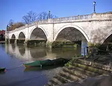 - ↑ London Bridge (circa 55 AD), Kingston Bridge (date of construction unrecorded, but renovated in 1193 so dating from the mid-12th century at the latest), Putney Bridge (1729), Westminster Bridge (1739), Hampton Court Bridge (1752), Kew Bridge (1759), Blackfriars Bridge (1769) and Battersea Bridge (1771) predate Richmond Bridge, but have all been demolished and replaced since the construction of Richmond Bridge.