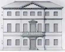 Richmond House was destroyed by a fire on 21 December 1791,[7] and was not rebuilt by the 3rd Duke or his descendants. The library and art collection were rescued from the fire and were removed to Goodwood House, where the surviving two wings were built (to the designs of James Wyatt) to re-house them.[8]