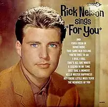 Rick Nelson Sings For You is the ninth studio album by rock and roll and pop idol Rick Nelson and his second for Decca Records. The album was released on December 9, 1963, and features the singles "Fools Rush In (Where Angels Fear to Tread)" (which peaked no 12) and For You, the latter reach No. 6 on the Billboard Hot 100 in January 1964. Nelson's version of the song was his last top ten hit for eight years.