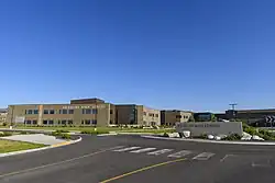 Central Valley School District had been planning for a new high school for 40 years.[11][12] Initial planning for a $129.9 million dollar bond were in motion in early 2017 to fund a number of school district projects, including a new high school.[13] Voters in the district approved the bond measure by 70% in early 2018.[14] Plans in 2017 initially had the new school at land the district had acquired in 1980 that was in the Saltese Flats area.[13][15] The Saltese Flats site had a number of issues, such as building height restrictions that would have required some structures to be built partially underground, as well as the necessity of extending major utilities to the site.[16] The district decided against going over their budget and instead purchased more than 99 acres (40 ha) from the Spokane Gun Club,[17] with the intention of building on that site. Environmental concerns with the Spokane Gun Club site were addressed through a commitment of up to $1 million dollars by the club to clean up lead from the property, with the district covering costs beyond that and the Washington State Department of Ecology inspecting the land.[16][11] Enhanced security was a focus of the new school, including increased cameras and an intercom system for granting entry.[18] Funding for the school was provided by the bond approved by voters as well as matching construction funds from the state.[1][19] On November 26, 2018, a 14-person naming committee selected "Ridgeline High School" as the name of the new school from more than 430 proposed names.[20] Among the three final recommended names were "Saltese High School" and "Chief Andrew Seltice High School". According to the school district, Ridgeline High School was chosen because it was a "strong and powerful" name and also described the local geography of the area.[20] Construction began in late August of 2019,[11][21] with construction completing two years later.[8]