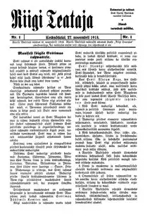 Riigi Teataja (State Gazette) is a public journal of the Republic of Estonia. The first issue was published on 27 November 1918.[1]