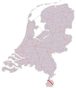 | Voerendaal | 15 | 9.3 | — | Interchange Ten Esschen | Eastbound exit and westbound entrance only | |