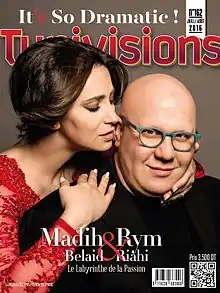 ![]() Rim Riahi and her husband on the August 2016 cover of Tunivisions | |