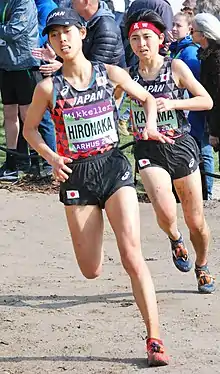 Hironaka (ahead of Ayuka Kazama) at the 2019 IAAF World Cross Country Championships