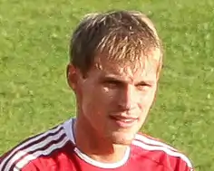 In 2009, after Dinaburg Daugavpils were excluded from the Latvian Higher League because of suspect about betting against their own results, Krjauklis was set free.[2] Then he joined FK Ventspils again. This time he became a starting eleven player and played 25 matches in the 2010 season. After that season Krjauklis accepted an offer from Azerbaijan and signed a two-year contract with the Azerbaijan Premier League club AZAL PFC.[3] His start there was bright as he played in the starting eleven but then, after just 10 matches, in August 2011 he was released. Krjauklis returned home and after a few days was signed by the Latvian Higher League club Liepājas Metalurgs.[4] Until the end of the season he participated in 10 league matches and also managed to score once.