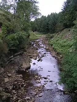 The only significant tributary of the River Ashop is the short River Alport. The flow of the Alport is partially diverted by a weir to feed into the Ashop above the impound weir built in the 1920s to increase the catchment area of the Derwent Reservoir prior to the building of the Ladybower Reservoir downstream. The weir impounded the water and fed it into an open culvert (water conduit) that was built along the side of the hill. The culvert then feeds into a siphon over the river in a 6-foot-diameter (1.8 m) iron pipe before entering a tunnel to pass through the hill to the Derwent Reservoir via an open watercourse, entering the reservoir just north of the dam wall. The concrete structure of the weir is visible when travelling up the Snake Pass route from Sheffield.[3]