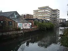 ![]() The River Foss at York, looking upstream. The bridge is the Foss Bridge (1811–12), which links the streets of Fossgate and Walmgate. | |