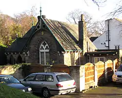 The house has been described as “Sumptuous Gothic”[5] and is built from rock faced stone with ashlar dressings and gabled and hipped slate roofs. There is extensive use of lancet and sash windows with two storey bays at the front.[6] The house has a fine entrance lodge at the corner of Graham Road and Riverdale Road, it is built in the same style as the main house and includes a hipped porch. It is also Grade II listed and is now used as offices.[7]