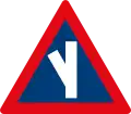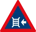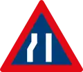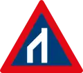 Roadway narrows from the left side ahead