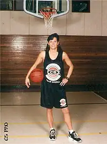 Garcia had a stellar collegiate career with high scoring games of 46 and 40 points in her first year as a college player.[9][12] She was a Region NJCAA All-American and led the Nation in scoring as a freshman, averaging 31.5 points per game before the implementation of the three-point line in the college game. Many of her points came from beyond what would have been the three-point arc.[13] She is the career All-time leading scorer at Dodge City College scoring 1,298 points in just two years.[14] She has held this title for over 33 years.[15] At Dodge City, Garcia earned All-America honors and was ranked as one of the top junior college swing guards in the country when she averaged 28 points and five rebounds per game as a sophomore in 1984–85. She ranked as the nation's fourth-leading scorer as a sophomore."[16] Garcia played at The University of Nebraska her junior year[17][18] and Friends University her senior year where she averaged 20 points per game and led her team and league in assists. She was a unanimous KCAC First-Team selection and NAIA Region All-Star her senior year.[19] Friends University Lady Falcons won the KCAC conference and made the NAIA National Tournament. Her Friends University Hall of Fame[20] Coach Jim Littell, now the head coach at Oklahoma State University, said "She's the greatest offensive talent I have ever coached. Passing, scoring, handling the ball".[9]