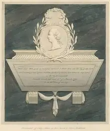 A memorial to him and his family (primarily centred on his wife Caroline Keppel (1734–1769), who predeceased him due to consumption) was erected in St Mary's Church, Acton, London. He and Caroline were married on 22 February 1758.[1] Her parents were Willem van Keppel, 2nd Earl of Albemarle and Anne van Keppel, Countess of Albemarle (a grand-daughter through an illegitimate line of King Charles II).[1] The children of Caroline and Robert included the future distinguished British diplomat Sir Robert Adair (1763–1855).[1] Two daughters (Caroline and Amelia) died in infancy. Two other daughters were Diana (1760-1851) and Elizabeth (1769-1841), who married George Barrington, 5th Viscount Barrington.