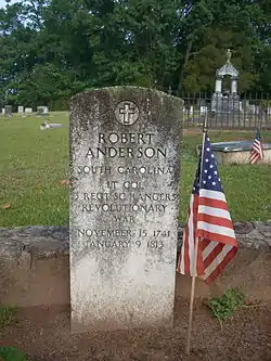 ![]() Robert Anderson's grave marker at Old Stone Church (Clemson) cemetery | |
