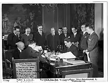 In January 1926 he was a delegate to Franco-Soviet economic negotiations. French investors have been by far the largest buyers of Russian bonds issued before 1917 and had invested the most capital in the Russian Empire, and thus were the ones most hurt by the nationalisations carried out by the Soviet regime and by the debt repudiation of 1918, the largest debt repudiation of all time. A key problem in Franco-Soviet relations in the 1920s was the French demand that the Soviet Union honor the debts repudiated in 1918 and paid compensation to the French investors whose assets in Russia had been nationalised without compensation, demands that the Soviet government consistently rejected. From 1927 to 28 February 1933, he headed the Commercial Relations Department of the Political and Commercial Directorate and subsequently Deputy Director of the Political and Commercial Directorate at the Quai d'Orsay working under the Political Director René Massigli.[6] Coulondre was a member of the "Protestant clan" that dominated the Quai d'Orsay in the first part of the 20th century.[7] From 1920 to 1936, Coulondre had closely studied the German economy and in 1931 when the premier, Pierre Laval, visited Berlin to discuss the crisis caused by the collapse of the banks in Central Europe, Coulondre had accompanied him as an adviser.[8]
