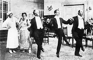 Of Courtneidge's two productions in 1913, Ivan Caryll's American musical Oh! Oh! Delphine received a strong reception, but The Pearl Girl was only a moderate success.[3] In 1914 Cicely Courtneidge and Jack Hulbert starred in The Cinema Star, an adaptation by Hulbert and Harry Graham of Die Kino-Königin, a 1913 German comic opera by Jean Gilbert. It was a hit for Courtneidge and ran to full houses at the Shaftesbury Theatre until Britain and Germany went to war in August 1914; anti-German sentiment brought the run to a premature and abrupt halt.[7] Courtneidge's next shows, My Lady Frayle, Oh, Caesar! and The Light Blues (all 1916, the last of which included a young Noël Coward in its cast)[18] all failed,[19] and the patriotic operetta Young England was only a modest success.[3]