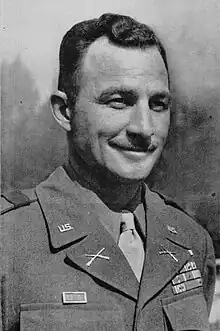Originally slated for the Army Air Corps, a diagnosis of astigmatism prevented him from flying, and he was assigned to the Infantry.[4] Posted to the 1st Infantry Division's 18th Infantry Regiment at Fort Wadsworth, New York, York trained with his regiment in anticipation of U.S. entry into World War II.[4] In 1942 he took part in the North African campaign, including the Operation Torch landing at Oran.[4] He took part in the 1943 Allied invasion of Sicily, as well as the 1944 Operation Overlord invasion of France, including the landing at Omaha Beach.[4] York advanced through the ranks, and by June 1944 was a lieutenant colonel in command of the regiment's 1st Battalion.[4]