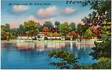 Initially, Mount Gretna offered visitors a picnic grove with wildflowers and natural springs.[21][4] Although Mount Gretna gave people another reason to ride his railroad, Coleman was still competitive with Freeman who had previously created a pleasure resort, Penryn Park.[2] In a few years, Coleman added a hotel, pavilions, a playground, an amusement park with a carousel, a store, a dance hall, and a skating rink to Mount Gretna.[4][21] In 1885, Coleman dammed Conewago Creek, creating Lake Conewago for swimming and boating.[21]