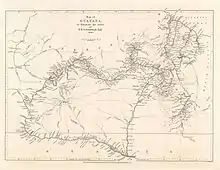 He fulfilled his mission (1835–1839) with great success, incidentally discovering the giant Victoria Regia water lily in 1837 and many new species of orchids, one genus of which, Schomburgkia, was named for him.[1] He also laid to rest the persistent myth of Raleigh's Lake Parime by proposing that the seasonal flooding of the Rupununi savannah had been misidentified as a lake.[2] In 1841, he returned to Guiana, this time as a British Government official to survey the colony and fix its eastern and western boundaries. The result was the provisional boundary between British Guiana and Venezuela, known as the "Schomburgk Line", and the boundary with the Dutch colony of Surinam.[3] He also made further geographical and ethnological observations and was joined there by his brother, Moritz Richard.[1][4] He repeatedly urged fixing the boundary with Brazil, motivated by his encounters with Brazilian enslavement of local Indian tribes, most of which no longer exist. Schomburgk's survey later played a role in the arbitration of the southern boundary between British Guiana and Brazil, with arbitration by the King of Italy in 1904.
