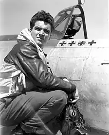 He enlisted in the U.S. Army Reserve on June 3, 1942, and on November 13, he entered the Aviation Cadet Program of the U.S. Army Air Forces. He was commissioned a second lieutenant and awarded his pilot wings on August 30, 1943.[2]