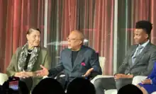 Patterson (right) with Henry Louis Gates Jr. (center) and Evelyn Brooks Higginbotham (left)