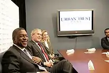 By January 2009, Ion Media had another subchannel network, Urban TV, in the works with him targeted to African-Americans.[18] Axiom Bank N.A. Maitland, Florida, was founded by Robert Johnson, who also founded the Black Entertainment Network (BET). As of 2013, Johnson was a member of the board of directors for RLJ Lodging Trust, RLJ Entertainment, Inc., KB Home, Lowe's Companies, Inc., Strayer Education, Think Finance, Inc., NBA Board of Governors, The Business Council, and the Smithsonian Institution's National Museum of African American History and Culture.[16][19][20][21][22][23][24][25] Johnson has also served as a member of the board of directors for several other companies and organizations, including US Airways, Hilton Hotels, General Mills, the United Negro College Fund, and Deutsche Bank's Americas Advisory Board.[16][26][27][28][29][30]