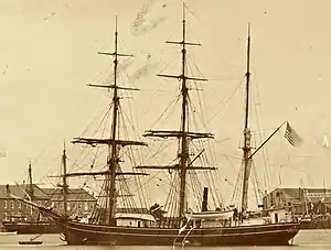 Lt. Berry took on two Chukchis as hunters and dog drivers at Saint Lawrence Bay, and on 20 August, entered the Arctic Ocean. At Herald Island, Berry found out that the crew of the preceding ship, USRC Thomas Corwin, had already covered the island without success. Three days later Berry landed with a party at then still little explored Wrangel Island further to the west and was the first to survey the southern coast and part of the interior, proving that Wrangel was an island and not the southern edge of a polar land mass.[3][4]