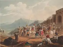 "Scene in Kattiawar, Travellers and Escort" 1830