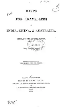- 1 2 Grindlay & Co.'s Overland Circular – Hints for Travellers to India, Detailing the Several Routes (PDF). London: Smith, Elder & Co. 1847.