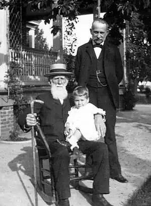 Robert Poole, his son, George Poole, and grandson, Robert Poole II, at the Poole estate in Baltimore, Maryland, c. 1898. Family photograph.