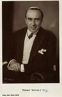 Robert Scholz (23 April 1886 – 10 October 1927) was a German film actor of the silent era.[1] He appeared in 76 films between 1919 and 1928. He was born in Germany and died in Berlin.
