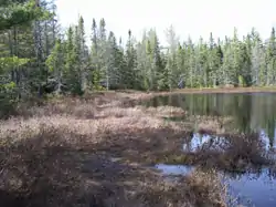 The Brown Sanctuary is a northern wetland surrounded by a small pond and bordered by a black spruce, tamarack, and white cedar swamp. Several shrubs can be found in the sanctuary, including leather leaf, bog-rosemary, Labrador tea, and both small and large cranberry. Many carnivorous plants can be found in this fen, such as pitcher plant, round leaved sundew, and hidden fruited bladderwort. These unique plants capture and digest insects and other food to obtain the necessary nutrients.