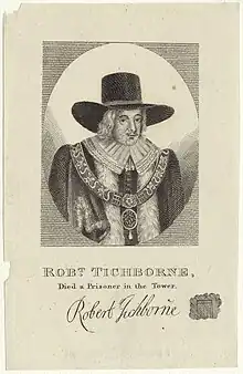 Sir Robert Tichborne (c. 1604 – c. 1682) was an English merchant, politician, author and military officer who served as Lord Mayor of London in 1656. He was a regicide of Charles I.[1][2]