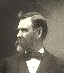 Vaughn helped found the city of Great Falls in 1883. Businessman Paris Gibson visited the Great Falls of the Missouri River in 1880 and was deeply impressed by the possibilities for building a major industrial city near the falls with power provided by hydroelectricity.[18] He returned in 1883 with Vaughn and several surveyors, and platted a permanent settlement on the south side of the river.[19] The city's first citizen, Silas Beachley, arrived later that year.[19] With investments from railroad owner James J. Hill and Helena businessman Charles Arthur Broadwater, houses, a store, and a flour mill were established in 1884.[18][19][20] The town plat was filed on September 30, 1884. By 1887 the town had 1,200 citizens, and in October of that year the St. Paul, Minneapolis & Manitoba Railway (later part of the Great Northern Railway) arrived in the city.[21] Great Falls was incorporated on November 28, 1888.[19]