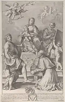 He was born at Ghent, and was first a scholar of Francis van Mierhop, but he afterwards studied under Hans van Cleef. When he was twenty-two years of age he went to Rome, where he became a disciple of Carlo Maratti. Under this master he became a good painter of historical subjects. He amused himself with the point in his leisure moments, and some of his plates were shown to Carlo Maratti, who recommended him to devote himself entirely to the art of engraving. He, however, painted several pictures for the churches of his native city, to which he returned after an absence, it is said, of thirty-seven years. He died at Ghent in 1748. His best work is the altar-piece of the high altar in the church of the Carthusians at Ghent, representing 'St. Peter appearing to a group of Monks of that order'. In the church of St. James is a picture by him of 'St. Catharine refusing to worship the False Gods'. Several other works by this master are in the churches and convents of his native city, all of which are painted in the style of Maratti.[1]