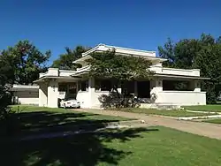 The history of the Robertson House parallels the rise and fall of the Kansas oil industry. The home's eclectic Prairie-style design, unique in Kansas, reflected the owner's financial success. When he built the home in 1923 at a cost of $40,000,[2] oil drill contractor Russell Roy Robertson likely believed that oil prices would remain steady. For the first time, oil workers, who had lived in temporary company towns, began to take permanent residence in oil towns like Eureka. In the words of historian Craig Miner, "Oil had become respectable during the 1920s."