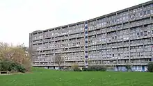 Robin Hood Gardens is a residential estate in Poplar, London, designed in the late 1960s by architects Alison and Peter Smithson and completed in 1972. It was built as a council housing estate with homes spread across 'streets in the sky': social housing characterised by broad aerial walkways in long concrete blocks, much like the Park Hill estate in Sheffield; it was informed by, and a reaction against, Le Corbusier's Unité d'Habitation.[1] The estate was built by the Greater London Council,[2] but subsequently the London Borough of Tower Hamlets became the landlord.