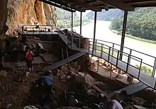Roca dels Bous (Catalan: "Bull's Rock") is an archaeological site located in Sant Llorenç de Montgai, in the Catalan Pyrenees, Spain. Since 1988 the Autonomous University of Barcelona and the UCL Institute of Archaeology study and record the fossil sequence of southern European Neanderthals who inhabited the area during the Middle Paleolithic approximately 50,000 years ago. The excavation team utilizes a worldwide unique digital system and various innovative technologies that significantly improve the quality of the classification of the recovered objects.[1] Roca dels Bous has as one of the first Paleolithic excavation sites in Spain established a visitor centre, that focuses on displaying the Prehistory research of the prepyrenees area.[2][3]
