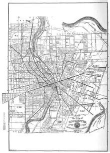Expansion continued in 1880 with the opening of the Allen and Jay Street line. A new line was also built along Park Avenue from Alexander Street to Vick Park, as well as an extension along Monroe Avenue to Field Street in 1881. The railway's first foray into bus transportation was made in 1882 with horse-drawn omnibus that ran from Four Corners to the city limits on East Avenue. Additional lines were constructed along Lyell Avenue in 1883. Ridership on the Park Avenue line encouraged another extension from Vick Park east to Brighton (portions of which have since been annexed by the city of Rochester). One of the last lines constructed was built along Hudson Avenue between Central and Clifford avenues in 1885. A line was proposed for Plymouth Avenue, but strong opposition from the residents ended the project.[3] Winter weather and labor unrest continued to restrict operations, however. Workers went on strike April 1, 1889. Replacement workers were brought in to maintain service, but riots broke out between the two factions on April 15. Police were brought in to put down the riots, but service did not resume until June 2.