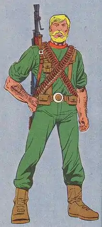 In the Marvel Comics G.I. Joe series, he first appeared in G.I. Joe: A Real American Hero #1 (June 1982), along with the rest of the original team. He participates in the rescue of nuclear physicist and noted peace activist Adele Burkhart from a minor Cobra facility. Adele is rescued safely, only suffering from a gunshot wound to the arm.[5]