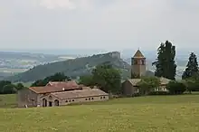 In the three other directions the countryside is less open and bounded by the lines and crests of surrounding hills, with vineyards, villages, and typical Mâconnais settlements, in particular: