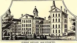The goal of establishing a separate facility in Kingston for the "criminally insane" was founded largely due to issues of overcrowding at local jails and the nearby Kingston Penitentiary.[4] The Provincial Lunatic Asylum established in Toronto and similar institutions in New York persuaded the politicians of Upper Canada to design a facility that incorporated "modern treatment methods" of the time.[5][1][6]