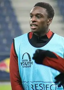 Born in Rotterdam,[3] Kongolo started out at Feyenoord's youth academy.[4] His performance for the Netherlands U20 side in February 2013 attracted interest from Premier League sides Arsenal, Chelsea and Manchester City.[5] Because he was 15 at the time, there were concerns for Feyenoord, as Kongolo’s departure could leave the club with no compensation and previously saw their youth talents depart in recent years, such as, Nathan Aké, Jeffrey Bruma and Kyle Ebecilio.[4] Eventually, Kongolo moved from Feyenoord to Manchester City in March 2014, immediately sent to the development squad and because he was 16 at the time, they would pay Feyenoord compensation.[6][7] Later in July 2014, he signed his first professional contract with the club.[8]