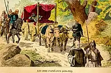 There was nothing left the King to do but to be content with his name of King, his flowing hair, and long beard, to sit on his throne and play the ruler, to give ear to the ambassadors that came from all quarters, and to dismiss them, as if on his own responsibility, in words that were, in fact, suggested to him, or even imposed upon him. He had nothing that he could call his own beyond this vain title of King and the precarious support allowed by the Mayor of the Palace in his discretion, except a single country seat, that brought him but a very small income.