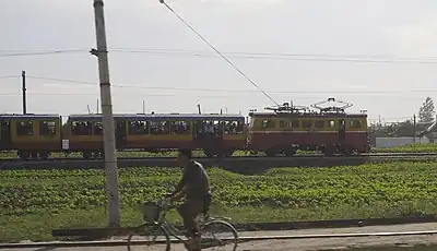 The Korean State Railway (Kukch'ŏl) operates a wide variety of electric, diesel and steam locomotives, along with a variety of electric multiple unit passenger trains. Kukch'ŏl's motive power has been obtained from various sources. Much, mostly steam and Japanese-made electric locomotives, was inherited from the Chosen Government Railway (commonly known as Sentetsu), the South Manchuria Railway (Mantetsu) and various privately owned railways of the colonial era.[1] Many steam locomotives were supplied by various communist countries in the 1950s, including the Soviet Union, Czechoslovakia, Hungary, Poland, Romania, and China.[2]