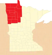 Kittson, Roseau, Lake of the Woods, Marshall, Polk, Red Lake, Pennington, Clearwater, Beltrami, Norman, Mahnomen, Hubbard, Clay and Becker.